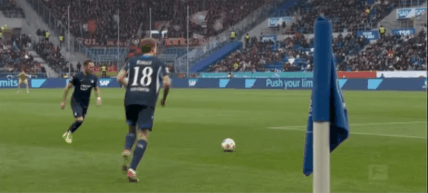 4' - 4分钟,霍芬海姆获得本场第1个角球