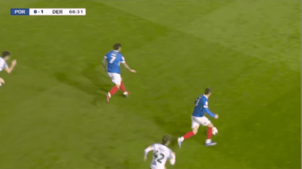 69' - 第3个越位 - (德比郡)