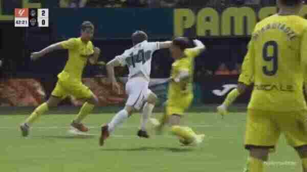 43' - 第1张黄牌,裁判出示了本场比赛的第一张黄牌,给了比利亚雷亚尔